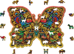Dieses farbenfrohe Holzpuzzle in Schmetterlingsform bietet Spaß und Entspannung. Jedes Teil ist exakt per Laser geschnitten und garantiert glatte Kanten sowie detailreiche Muster. Viele Teile haben die Form von Tieren, die auch als kleine eigenständige Figuren verwendet werden können.
