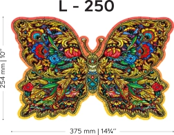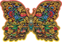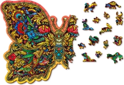 Ein Schmetterling mit reichen Mustern und kräftigen Farben macht das fertige Puzzle zu einem dekorativen Bild, das in jedem Interieur hervorsticht.