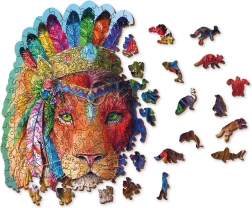 Entdecken Sie ein eindrucksvolles Holzpuzzle mit dem Motiv eines mystischen Löwen mit reichhaltigen Verzierungen und farbenfrohen Details. Einzigartig geformte Teile, darunter Tiersilhouetten, verwandeln das Puzzeln in eine kreative und spannende Beschäftigung. Dank laserbetonter Details und perfekt glatter Kanten ist das Zusammensetzen angenehm, und das Ergebnis wirkt wie ein Kunstwerk, das sich auch zur Innendekoration eignet.