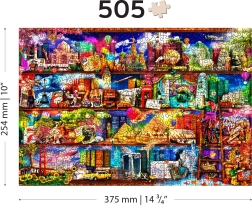 Holzpuzzle WOODEN CITY, beidseitig – Reisebuch-Regal, 505 Teile