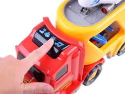 Mit einem Knopfdruck leuchten die Lichter auf und Start-, Motor- sowie Hupgeräusche erklingen – Kinder erleben actionreiches Spiel wie in echt.