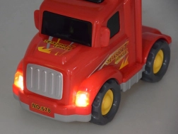 Dieser große Kinder-Sattelschlepper mit Auflieger ist ideal für kleine Fahrerinnen und Fahrer sowie Pilotinnen und Piloten. Dank des Friktionsantriebs genügt ein Anschubsen auf einer glatten Oberfläche und das Fahrzeug fährt los. Auf dem Dach der Kabine befindet sich ein Knopf, der realistische Motor- und Hupgeräusche sowie Lichteffekte aktiviert – für noch mehr Spielspaß.