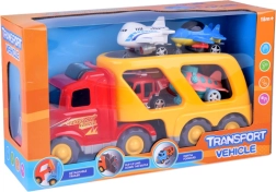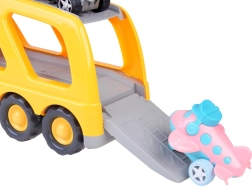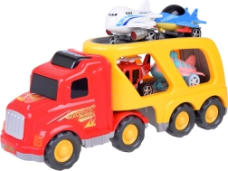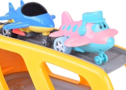 Zum Set gehören drei Flugzeuge und ein Hubschrauber, die sich über die ausklappbare Rampe leicht verladen lassen. Die robuste Ausführung aus Kunststoff in lebendigen Farben ist sicher und widerstandsfähig für den täglichen Spielgebrauch.