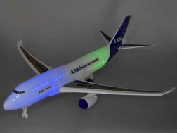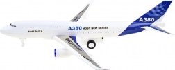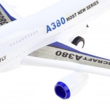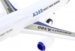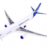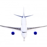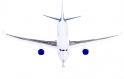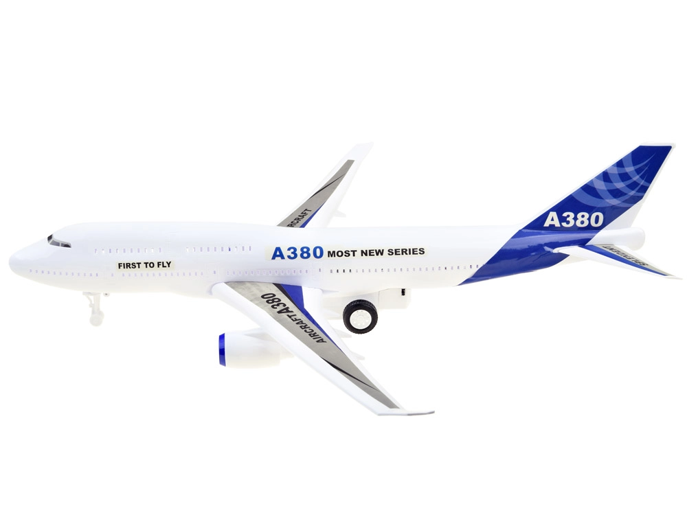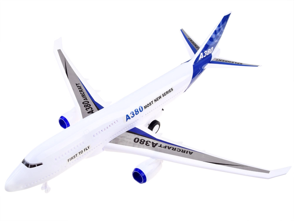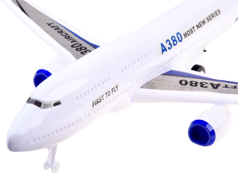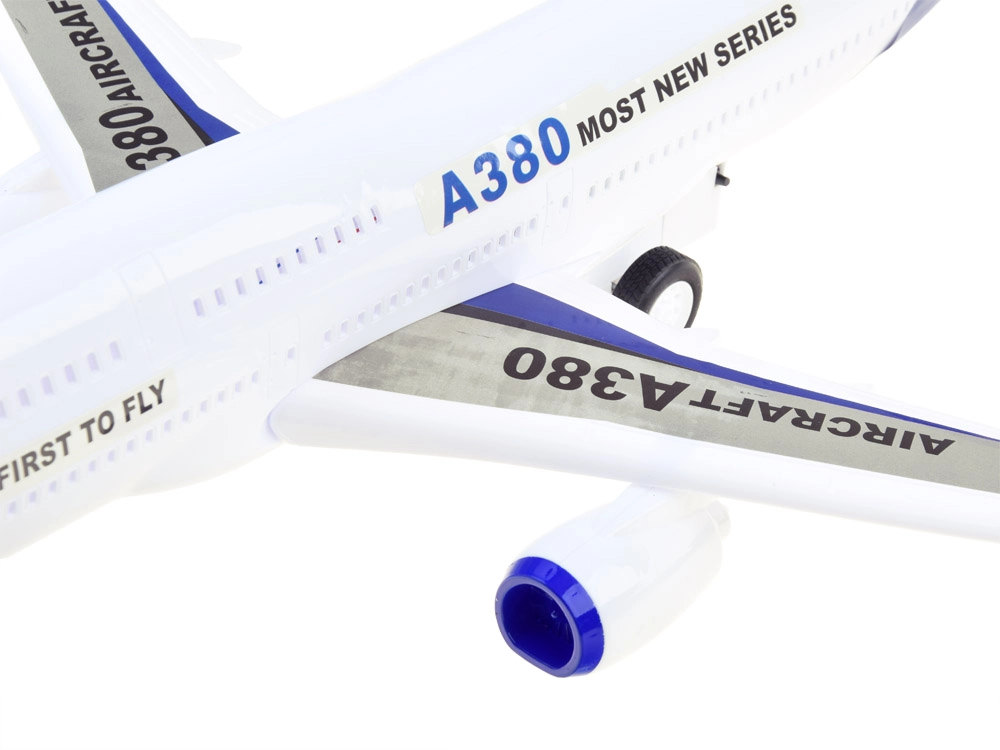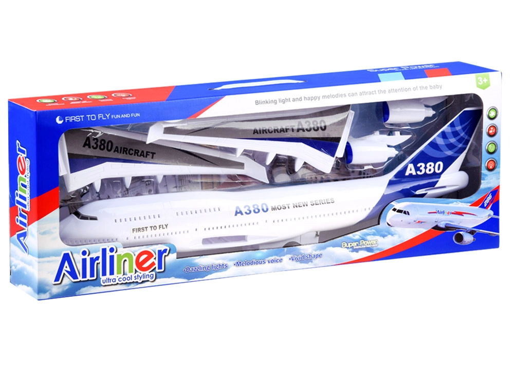 Das Flugzeug besteht aus hochwertigem Kunststoff und wurde mit Liebe zum Detail gefertigt. Rumpf, Flügel und Leitwerk sind mit farbigen Aufklebern verziert. Das Fahrzeug ist mit einem Antrieb ausgestattet, dank dem es über den Flughafen rollen und auf der Bahn spielen kann. Ein Schalter befindet sich im Fahrgestell, der die Sound- und Lichteffekte des Spielzeugs aktiviert. Nach dem Einschalten hören wir Start- und Landegeräusche sowie den Lauf der Triebwerke. Die Geräusche werden von blinkenden Lichtern im Inneren der Kabine begleitet.