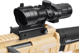 Ergonomischer Griff und sandfarbenes Design mit Details wie einem Visier für ein realistisches, aber sicheres Spielerlebnis.