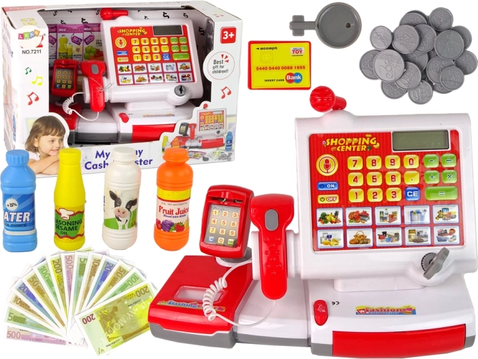 Mit der Kasse können Kinder verschiedene Rollen ausführen und ihre Kommunikations- sowie Verhandlungsfähigkeiten verbessern. Die Kasse enthält einen Rechner, einen Scanner und viele weitere Zubehörteile.