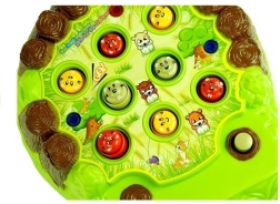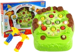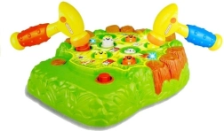 Das Spielset enthält eine grün-braune Kunststoffplatte mit bunten Tierköpfen und zwei Hämmer, was das gleichzeitige Spiel von zwei Spielern ermöglicht. Die bunte Grafik von Tieren und Pflanzen auf der Platte zieht jedes Kind an, das sich mit diesem Spiel nie langweilen wird. Kinder haben nicht nur Spaß, sondern erlernen auch neue Fähigkeiten wie das Erkennen von Farben und Geräuschen.