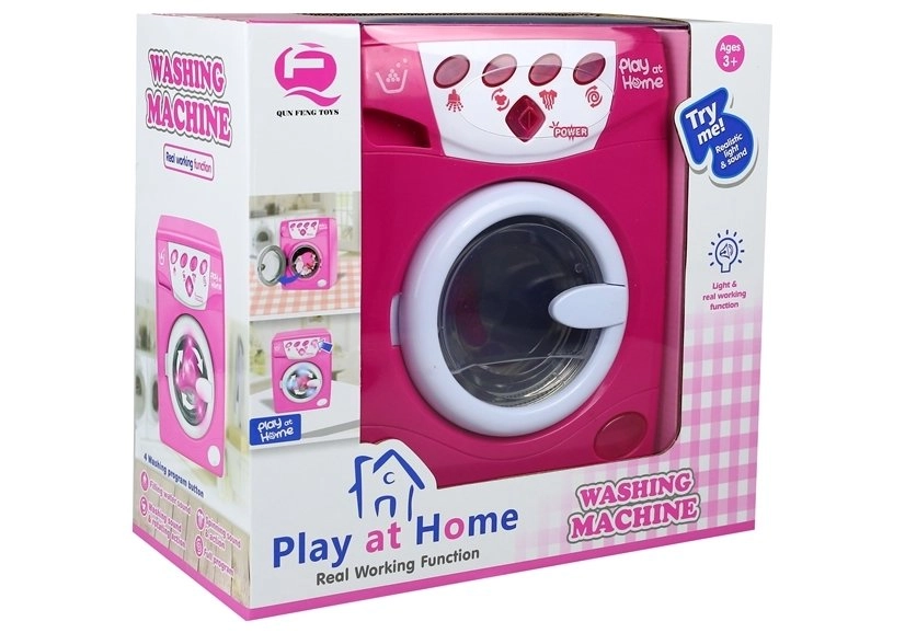 Freue dich über frisch gewaschene Kleidung. Funktioniert wie eine echte Waschmaschine. Die Waschmaschine verfügt über Licht- und Soundeffekte, die das Spiel noch spannender machen.