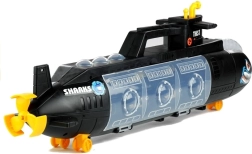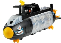 Das Spielzeug besteht aus einer schwarzen Konstruktion, kombiniert mit gelben Details und Aufklebern, sowie aus einem transparenten Teil mit Fächern für Fahrzeuge. Eine Seite ist bestückt – in jedem Fach befindet sich ein interessantes Fahrzeug, das das Spiel bereichern wird. Die andere Seite des Sortierers ist leer, sodass der Junge seine Lieblingsautos an einem Ort aufbewahren kann. Das Spielzeug steht auf kleinen drehbaren Rädern, sodass man damit spielen kann, während es über den Boden fährt. Das U-Boot verfügt über viele Details, die den Eindruck erwecken, es handle sich um eine verkleinerte Kopie einer Maschine in Originalgröße. Man kann die Schiffsschraube am Ende der Konstruktion sowie ein Periskop sehen, mit dem sich beobachten lässt, was über der Wasseroberfläche passiert. Der transparente Sortierer ist mit Fenstern verziert, was fantastisch aussieht. Das Hauptspielzeug ist zusammen mit den beiliegenden Fahrzeugen aus robustem und vor allem widerstandsfähigem Kunststoff gefertigt, der gegen Schäden, die während des Spielens auftreten können, beständig ist.