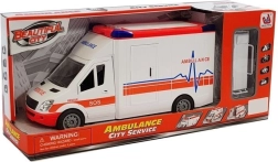 Ein detailgetreu nachgebildeter Krankenwagen. Das Fahrzeug ist bis ins kleinste Detail ausgearbeitet, der Innenraum ist mit allen Elementen eines echten Fahrzeugs ausgestattet, wie Lenkrad, Armaturenbrett, Sitze. Das Fahrzeug verfügt über Sound- und Lichteffekte, die über die auf dem Fahrzeugdach angebrachten Tasten aktiviert werden. Das Fahrzeug hat einen Rückzugantrieb. Seitliche und hintere Türen lassen sich öffnen und das Dach ist abnehmbar. Außerdem sind klappbare und abnehmbare Rettungstragen im Set enthalten. Das Auto ist leicht und schön verarbeitet, wird mit Batterien betrieben, die im Set enthalten sind. Das Fahrzeug hat Gummiräder. Ein großartiger Krankenwagen für den Transport von Patienten oder andere Aufgaben bei Rettungseinsätzen.