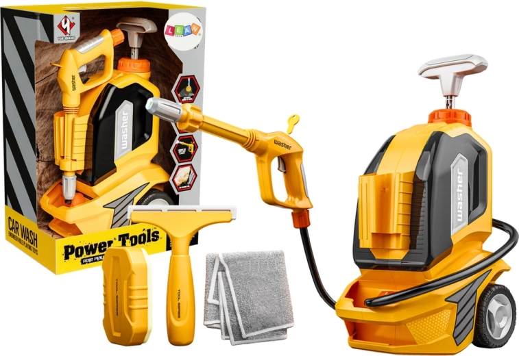 Kinder-Hochdruckreiniger mit Wasserfunktion inklusive Abzieher, Schwamm und Tuch
