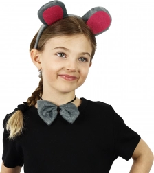 Graues und rotes Plüschstirnband mit Mausohren bietet bequemen Tragekomfort für alle Altersgruppen.