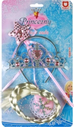 Verwandeln Sie das tägliche Spielen in ein Märchen! Dieses Prinzessinnen-Set bietet alles, was kleine Prinzessinnen brauchen – eine elegante Krone, verziert mit funkelnden rosafarbenen Steinchen, einen leichten Zauberstab und einen extra langen Zopf mit einer Länge von etwa 62 cm.