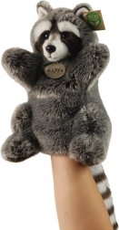 Niedliche Plüsch-Handpuppe eines Waschbären mit einer Höhe von 28 cm aus der RAPPA-Kollektion bietet realistische Ausführung, Handarbeit und eine eco friendly Füllung aus recycelten PET-Flaschen. Ideal für fantasievolles Spiel, Familientheater und Kuscheln – sicher und sanft auch für die Kleinsten.