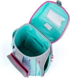 Der Innenraum ist großzügig genug, um alle notwendigen Utensilien für die erste und zweite Klasse aufzunehmen. Es fehlt auch nicht an einem Sicherheitsclip und reflektierenden Elementen für eine bessere Sichtbarkeit auf dem Schulweg und nach Hause.