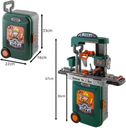 Dank des Koffers auf Rädern mit Teleskopgriff kann die gesamte Werkstatt einfach transportiert werden. Perfekt für Reisen!
