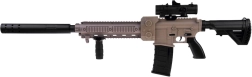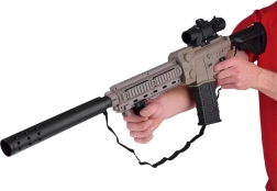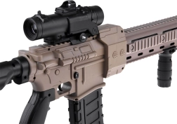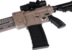 Automatisches Nachladen, elektronisches Schießen, verschiebbare Optik, verschiebbarer vorderer Griff, Schultergurt