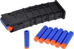 Das abnehmbare Magazin mit leicht bedienbarem Auslöseknopf und die weichen Schaumpfeile ermöglichen schnelles Nachladen und sicheres Spielen.