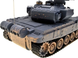 Erleben Sie realistische Militär-Action mit dem ferngesteuerten T90-Panzer, der schießt, fährt und leuchtet. Dieses Modell ist in eleganter grafitfarbener Tarnung gestaltet, und sein drehbarer Turm kann sich in beide Richtungen um 180 Grad drehen, was einen 360-Grad-Schussbereich ermöglicht. Der Panzer ist mit eindrucksvollen Lichteffekten ausgestattet, die in dunklen Räumen großartig aussehen. Außerdem verfügt er über eine geöffnete Turmluke, in die Sie die im Set enthaltene Panzerfahrerfigur mit Maschinengewehr setzen können.