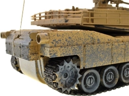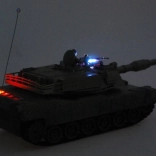 Der RC-Panzer M1A2 ABRAMS ist ein detailgetreues Modell mit eindrucksvoller LED-Beleuchtung sowie realistischen Motor- und Schussgeräuschen. Dank drehbarem Turm und Gummiketten meistert er Vor- und Rückwärtsfahrt, Drehungen auf der Stelle und präzise Manöver im Innenbereich.
