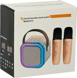 Unterhaltsames Karaoke-Set für Hauspartys und Kindergeburtstage: tragbarer Bluetooth-Lautsprecher 6 W mit RGB-LED-Beleuchtung und zwei kabellosen Mikrofonen für Duette und Gesangswettbewerbe. Einfache Bedienung, Stimmveränderungseffekte und kabelloses Musikstreaming machen dieses Set zur idealen Wahl für Familie und Freunde.
