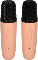 Karaoke-Set mit Bluetooth-Lautsprecher, 2 kabellosen Mikrofonen und LED-Beleuchtung 6 W – rosa
