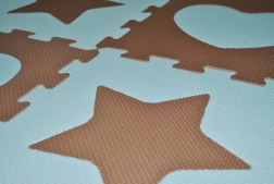 Diese Schaumstoff-Spielmatte im Puzzle-Format ist ideal für Kinderzimmer und Spielecken. Aus den großen Teilen entsteht im Handumdrehen eine weiche Spielfläche, die vor Kälte von Fliesen oder Laminat schützt. Dank der herausnehmbaren Sterne- und Herzformen lernen Kinder zugleich Formen und Feinmotorik.