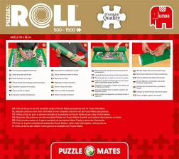 Suchen Sie eine smarte Lösung, um Puzzles zu legen, ohne den Tisch dauerhaft zu blockieren? Die rollbare JUMBO-Unterlage ist ideal für Zuhause und auf Reisen. Auf der grünen Unterlage sind die Maße der JUMBO-Puzzles markiert, sodass Sie die Ränder gleich zu Beginn des Puzzelns leicht und präzise anlegen.
