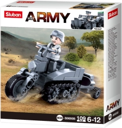 Entdecken und bauen Sie Ihr eigenes historisches Motorrad mit Ketten aus der Zeit des Zweiten Weltkriegs mit Hilfe des Sluban-Baukastens. Der hochwertige und strapazierfähige ABS-Kunststoff, aus dem die Teile gefertigt sind, garantiert sicheres Spielen und eine lange Lebensdauer.
