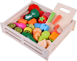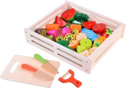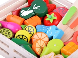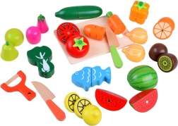 Jedes Stück Obst und Gemüse ist mit einem Magneten ausgestattet, der eine realistische Teilung in Stücke ermöglicht.