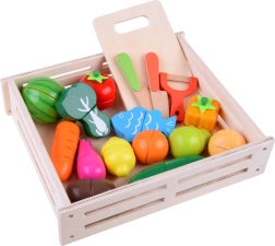 Dieses Holzset enthält eine vielfältige Auswahl an Obst, Gemüse und Fisch, alle mit Magneten für eine einfache Teilung versehen. Jedes Stück ist aus hochwertigem Holz gefertigt und mit ungiftigen Farben bemalt, die die Sicherheit für die Kleinsten gewährleisten.