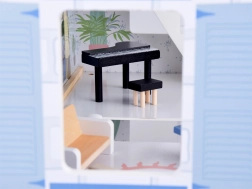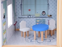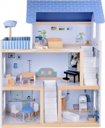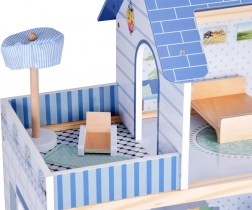 Das Holzpuppenhaus ist die Erfüllung eines Traums für jedes Mädchen. Besonders wenn sie kein Fan greller Farben ist, wird ihr dieses gedämpfte, blau akzentuierte Häuschen sicher gefallen.