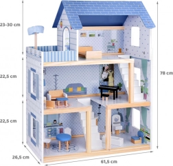 Blaues Holz-Puppenhaus + Möbel, 3 Etagen ZA5273
