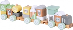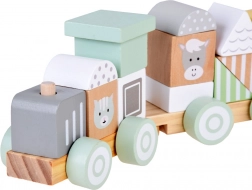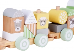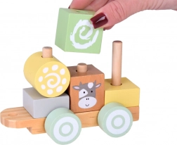 Die Holzeisenbahn ist ein ideales Spielzeug für kleine Kinder. Sie besteht aus bunten Blöcken mit verschiedenen Formen und Tiergesichtern wie Kuh, Schaf, Pferd und Kätzchen, was sehr attraktive Unterhaltung garantiert. Kinder können beliebig umgestalten, stapeln und kreieren, wodurch sie ihre Motorik und Vorstellungskraft entwickeln.