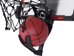 Der Spaß beginnt nach einer einfachen Installation und dem Einlegen der erforderlichen Batterien (3 x AA, nicht im Lieferumfang enthalten). Die Tafel bietet verschiedene farbige Beleuchtungen und Lautstärkeregelung. Das Spielen kann in einem von drei Modi erfolgen: Solo, für zwei Spieler oder in Zeitabschnitten. Nach dem Spiel können Sie den Ball in den speziellen Halter unter dem Korb legen.