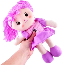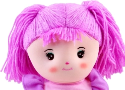 Die Stoffpuppe Zuzia begeistert mit einem zarten Design in Violettnuancen – von den Haaren bis hin zu Kleid und Schühchen. Sie ist weich, leicht und liegt gut in kleinen Kinderhänden, perfekt zum Beruhigen beim Einschlafen oder für unterwegs.