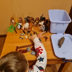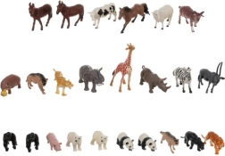 Eine umfangreiche Sammlung von Haus-, Wald- und Wildtieren fördert kreatives Spielen und das Lernen von Namen und Lebensräumen, in denen die Tiere leben.