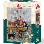 Entdecken Sie die Freude am Puzzeln mit dem ART PUZZLE mit dem Motiv bunter Katzen. Das Set mit 260 Teilen bietet eine angenehme Herausforderung und Entspannung und ergibt nach dem Zusammensetzen ein Bild im Format 34 × 48 cm.