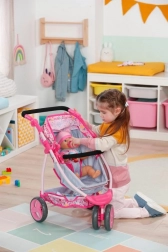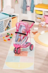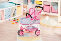 Dieser kombinierte Kinderwagen ist der ideale Begleiter für kleine Pflegemütter und ihre Puppen. Dank der Möglichkeit, in die sportliche Version umzuwandeln, kann die Puppe die Fahrt in verschiedenen Positionen genießen. Der Wagen verfügt über ein Verdeck, das sich für Sonnenmöglichkeiten leicht herunterklappen lässt, und über einen geräumigen Stauraum für alles Nötige auf dem Spaziergang – von Plüschtieren bis zu draußen gesammelten Schätzen.