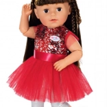 Zu Weihnachten kleidet sich BABY born gerne festlich. Und was könnte schöner sein als ein rotes Kleid mit Pailletten und einem Tüllröckchen, dazu silberne Leggings und eine Weihnachtsmütze, die die Ohren warm hält?