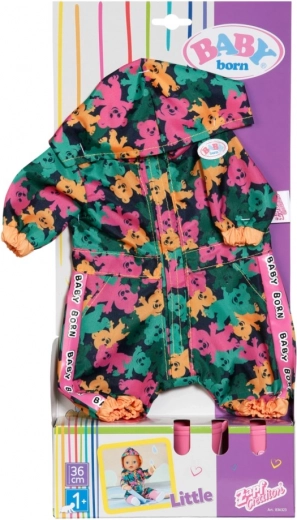 Dieser farbenfrohe Overall für die BABY BORN Puppe in der Größe 36 cm ist für bequemes Anziehen und tägliches Spielen gemacht. Dank Easy-Fit-Schnitt und Reißverschluss vorne können Kinder ihn selbst anziehen. Eine Kapuze, elastische Bündchen und passende Gummistiefel halten die Puppenfüße trocken.