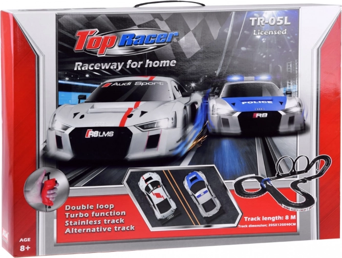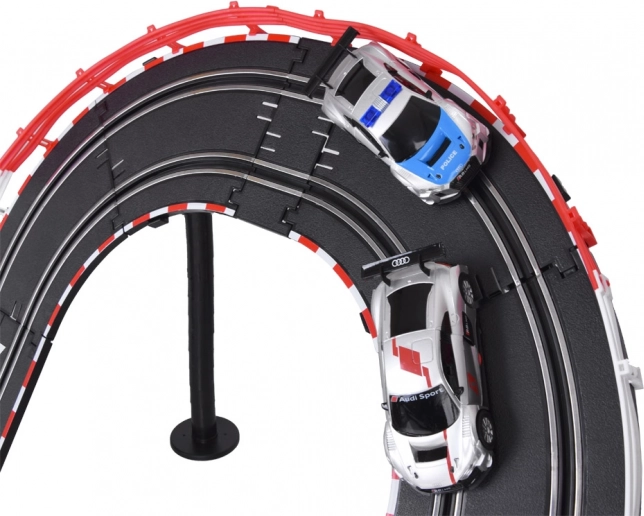 Extra lange Slotcar-Rennbahn ist der Traum jedes kleinen Rallye- und Auto-Fans. Die Strecke mit einer Länge von 8 m mit zwei Fahrzeugen, extremen Geraden und Kurven sorgt beim Spielen für jede Menge Spannung. Die zwei superschnellen, offiziell lizenzierten Audi-Fahrzeuge wurden mit großer Sorgfalt und Liebe zum Detail hergestellt. Das gesamte Set präsentiert sich sehr eindrucksvoll.