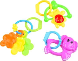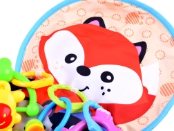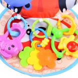 Die knisternde Mini-Unterlage und die bunten Rasseln fördern Sehen, Hören und Fühlen und unterstützen die Handkoordination.