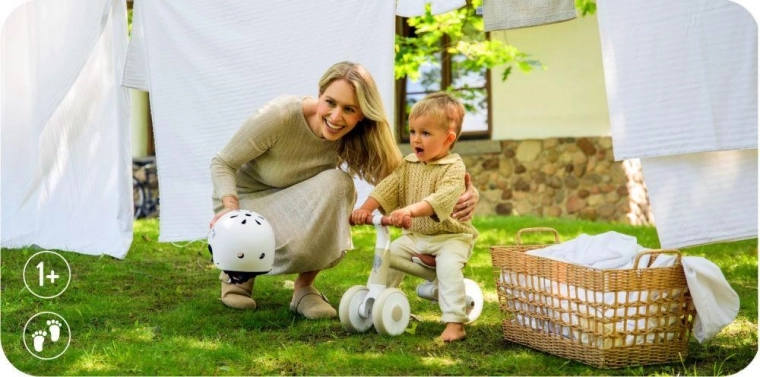 Das Laufrad MoMi DEX ist für Kinder ab 1 Jahr bestimmt. Es ist kompakt und daher ideal für die Kleinsten. Es ist leicht und stabil. Das Fahren damit hilft, das Gleichgewicht zu verbessern und unterstützt die allgemeine motorische Entwicklung. Es hat eine verstellbare Sitzhöhe und einen klappbaren Rahmen, was den Transport erleichtert.