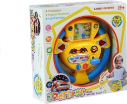 Dieses interaktive Kinderlenkrad bietet viele Funktionen, die spielerisch Fähigkeiten und Sinne fördern. Durch Drehen des Lenkrads bewegt sich das Auto auf dem Bildschirm über die Straße, die Blinker leuchten auf und durch Drücken der Tasten werden Hupe und verschiedene Soundeffekte aktiviert. Dank der auffälligen gelb-türkisen Farbkombination ist das Spielzeug für Kinder besonders attraktiv.