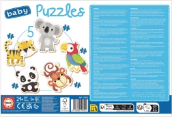 Die Educa Baby-Puzzle Wildtiere 5-in-1 sind speziell für kleine Kinder entwickelt, die gerade erst mit Puzzles beginnen. Durch die schrittweise steigende Teilezahl (3 bis 5) gewinnen Kinder spielerisch an Sicherheit und Geduld. Große und dicke Teile lassen sich leicht greifen und passen genau zusammen.