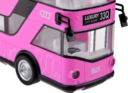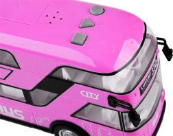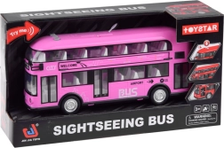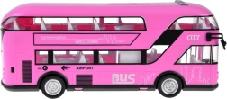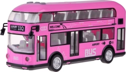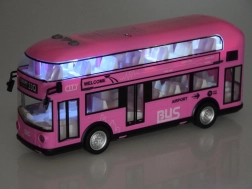 Fröhlicher rosa Doppeldeckerbus, der sicher viele kleine Fahrer und Fans solcher Fahrzeuge begeistern wird. Dieser realistische Doppeldeckerbus wurde mit großer Präzision in einer angenehmen rosa Farbe komplett aus Kunststoff gefertigt. Der Bus sorgt dank Sound- und Lichteffekten für viel Spaß. Er hat zu öffnende Türen und hinter den Fenstern befinden sich Sitze und ein Lenkrad, was das Spiel noch realistischer macht. Ein Vorteil des Busses ist die Pull-Back-Funktion. Ziehen Sie das Spielzeug einfach auf einer Oberfläche nach hinten oder nach vorne, und der Bus fährt von selbst.