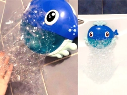 Dieses zauberhafte Badespielzeug erzeugt reichlich Schaumbubbles und begleitet sie mit Melodien, die jedem kleinen Badefan gefallen. Den Wal schalten Sie bequem mit der ON/OFF-Taste im Auge ein, und im Nu wird das Bad zur lustigen Show.