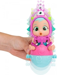 Fuzz aus der Serie CRY BABIES MAGIC TEARS Stars Jumpy Monsters bringt Kindern spielerische, fantasievolle Geschichten. Die Puppe hat ein abnehmbares Silikon-Kostüm mit einem niedlichen Monster-Motiv und kann farbige Tränen – Schleim weinen. Füllen Sie sie einfach mit der beiliegenden Flasche mit Wasser und drücken Sie sanft auf den Bauch.