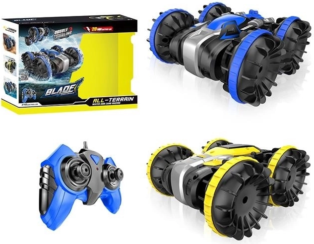 Entdecken Sie die erstaunlichen Steuerungsmöglichkeiten unseres R/C Amphibienautos, das nicht nur volle Fahrtmöglichkeiten bietet, sondern auch beidseitige Fahrt. Bei einem Aufprall dreht sich das Auto automatisch um und fährt weiter.
